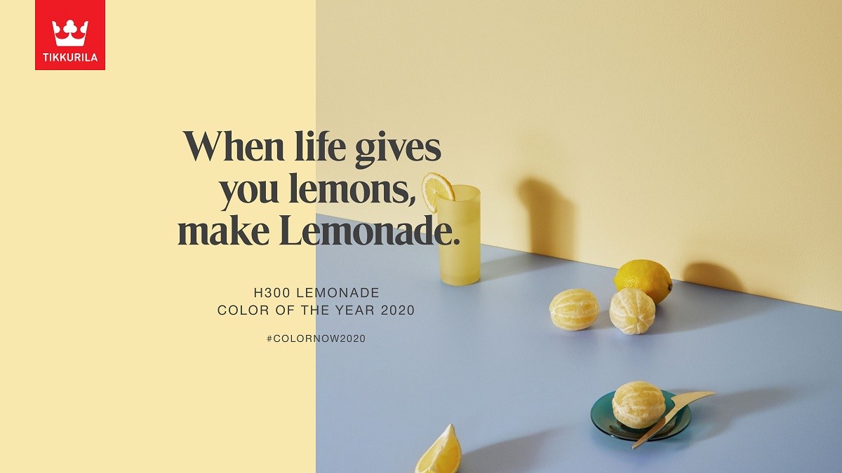 Międzynarodowa marka farb Tikkurila zaprezentowała kolor roku 2020. Jest nim H300 Lemonade – subtelny i energetyczny odcień żółtego, przywodzący na myśl delikatne promienie porannego słońca. Nowo ogłoszony kolor roku stanowi odpowiedź na najnowsze trendy w modzie i designie z żółcieniami w roli głównej. Został wybrany we współpracy Tikkurila ze znanym fińskim duetem - projektantką Laurą Juslin i architektką Lilli Maunula.