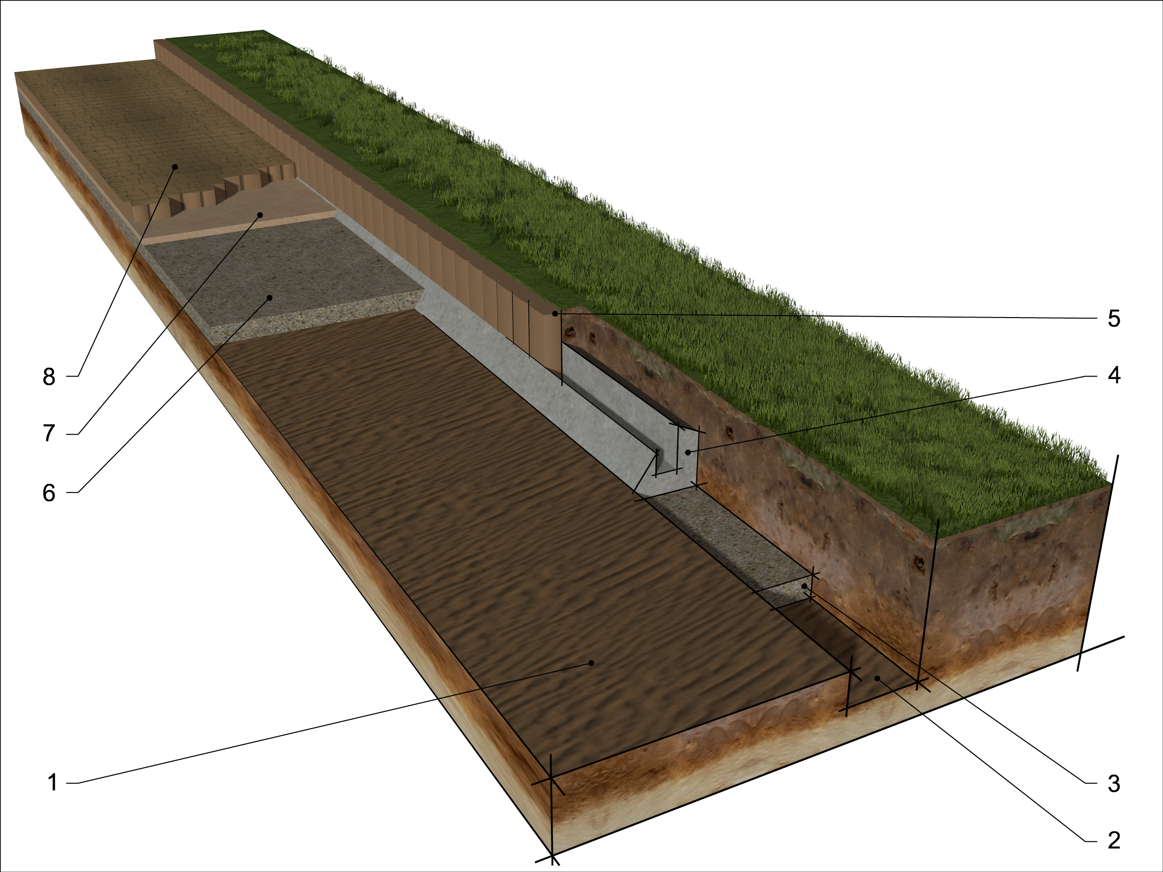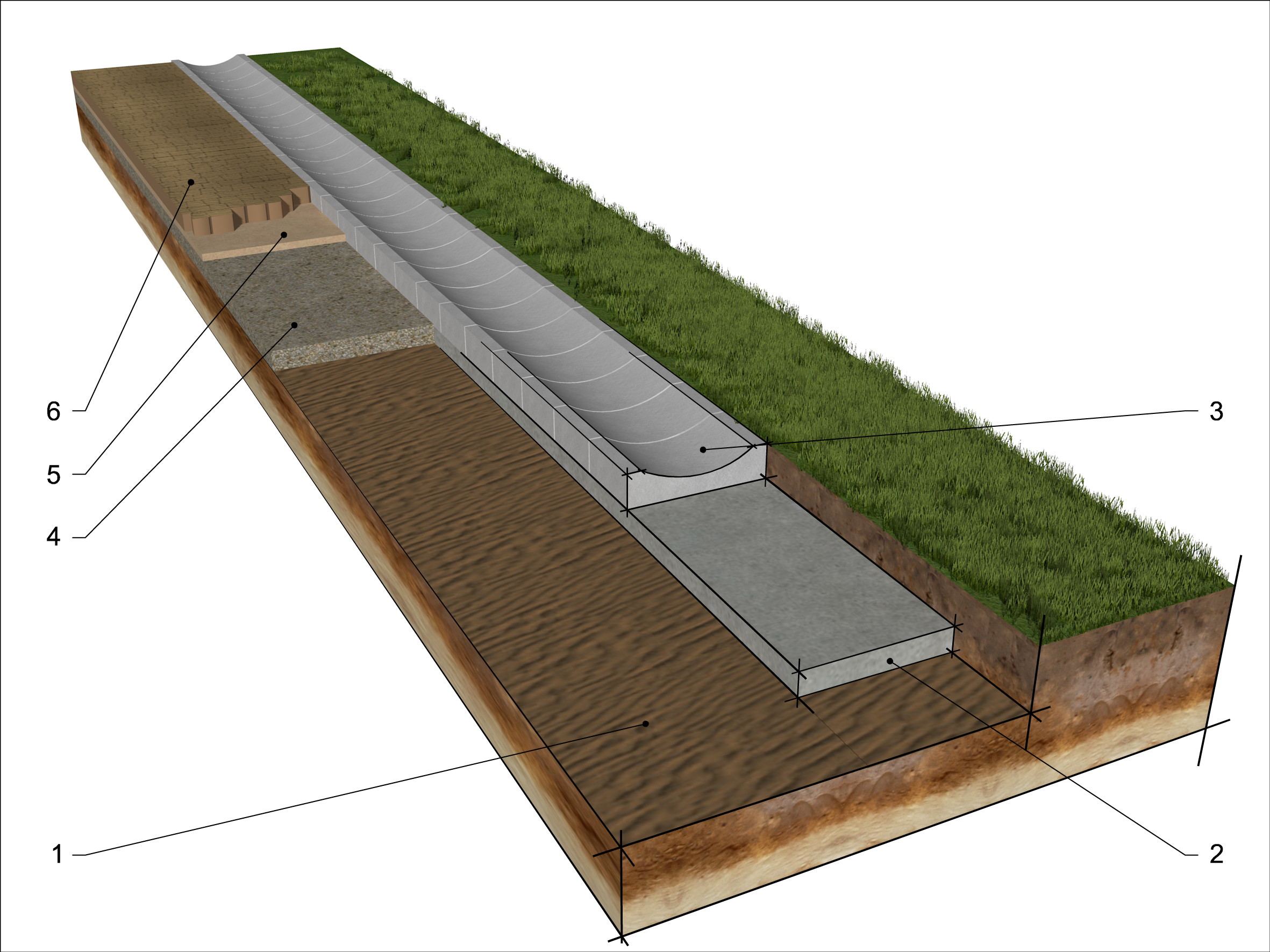 Osadzenie elementów obrzeża z koryta ściekowego (rys. Buszrem)