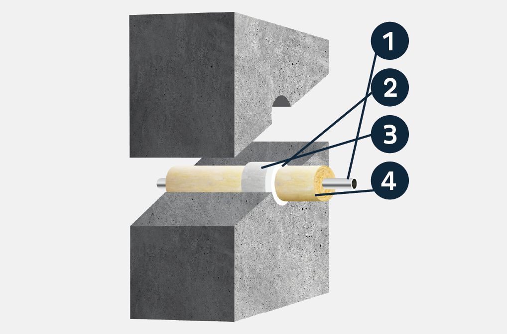 Przepusty instalacyjne z rurami stalowymi w izolacji z wełny skalnej zabezpieczone są w klasie do EI 240 dla stropu i dla ściany. Klasy te obejmują najczęściej spotykaną na inwestycjach klasę EI 120. Uszczelniacz dostarczany jest w opakowaniach (tubach) 310ml oraz ekonomicznym opakowaniu - 600ml w tzw. kiszkach.
