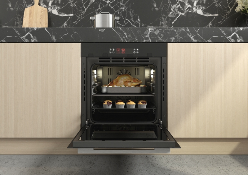 Panel sterowania dotykowego gwarantuje precyzyjną kontrolę nad przygotowaniem dania oraz łatwą blokadę sprzętu, aby uchronić dziecko przed przypadkowym włączeniem urządzenia. Eleganckie, potrójnie przeszklone drzwiczki chronią przed poparzeniem - dzięki ich budowie, front pozostaje chłodny nawet podczas pieczenia w maksymalnej temperaturze. Same drzwi domykają się niemal bezgłośnie - bez zbędnego trzaskania po wyjęciu potrawy.