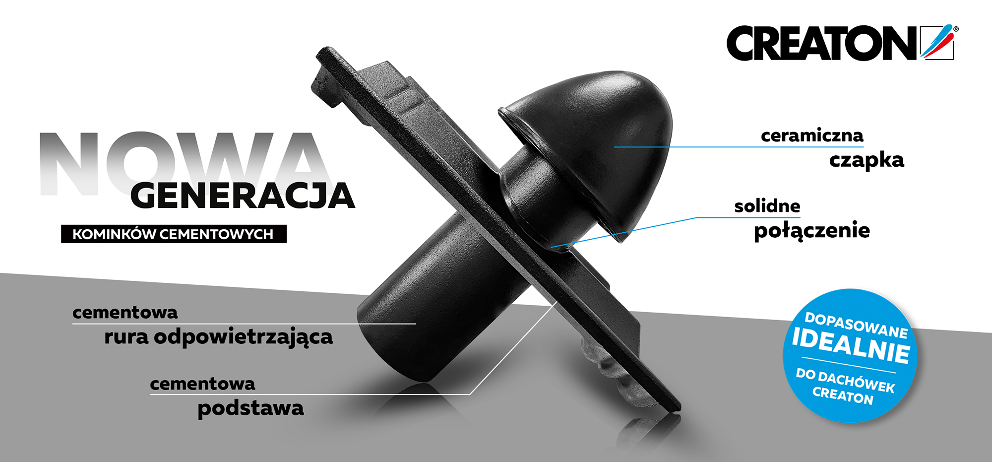 Firma CREATON Polska wprowadziła do oferty nową generację cementowych dachówek kominkowych Ø 100 mm dla modeli KAPSTADT, GÖTEBORG i HEIDELBERG. Produkty wykonane w całości z cementu, uzupełnione o ceramiczną czapkę, zapewniają jeszcze lepszą estetykę oraz parametry w zakresie funkcjonalności i trwałości, nawet w sytuacji narażenia na skrajnie niekorzystne warunki atmosferyczne. Cechują się zwiększoną efektywnością w zakresie odpowietrzania pionów kanalizacyjnych.