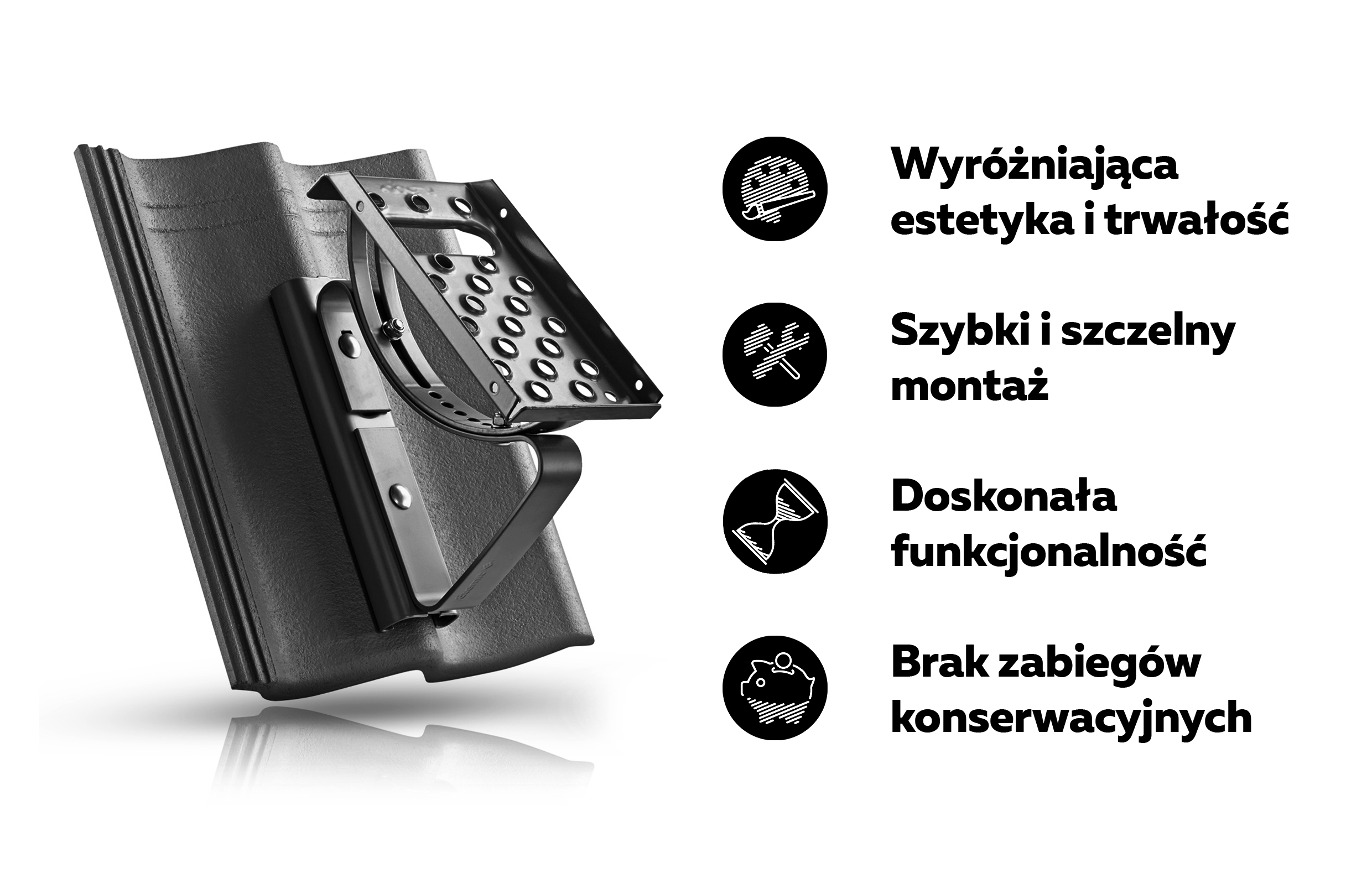 Jego zadaniem jest zagwarantowanie bezpieczeństwa w trakcie prowadzenia na dachu wszystkich koniecznych prac remontowych, montażowych oraz związanych z czyszczeniem połaci. Rozwiązania CREATON wyróżniają się też bardzo dużą wytrzymałością i wysoką funkcjonalnością. W przypadku pokryć cementowych tej marki podstawę systemu komunikacji stanowią specjalne dachówki kominiarskie. Służą one do stabilnego montażu pozostałych elementów systemu: ław oraz stopni, a ich stalowe elementy przenoszą ciężar osoby poruszającej się po połaci na konstrukcję dachu.