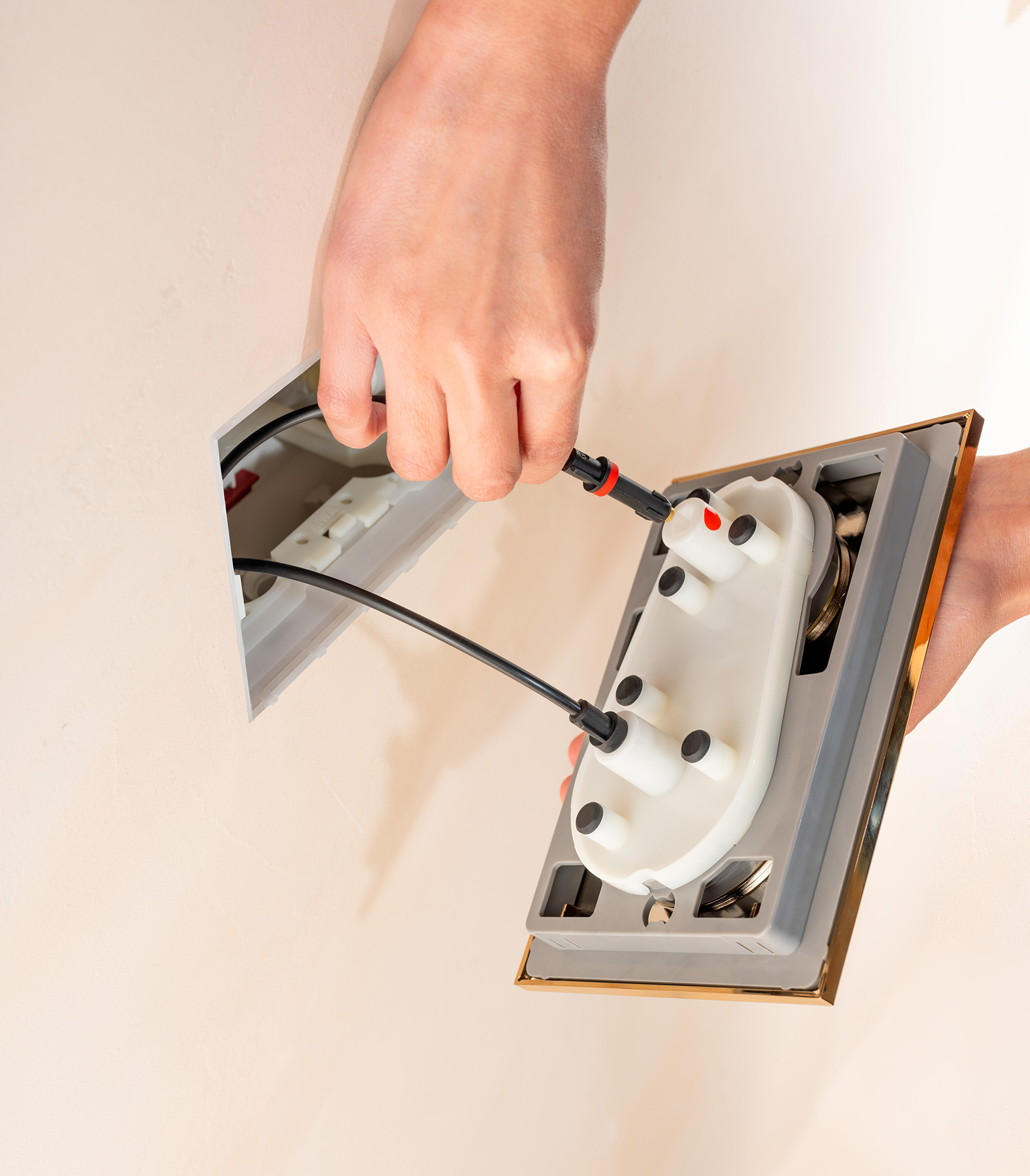 Ustawienia, czasochłonne regulacje i poprawki – a wszystko to w ciasnej przestrzeni. Tak z reguły wygląda podłączenie systemu spłukującego w stelażach podtynkowych. Tymczasem technologia dwulinkowa w stelażu Roca Duplo S eliminuje te problemy.