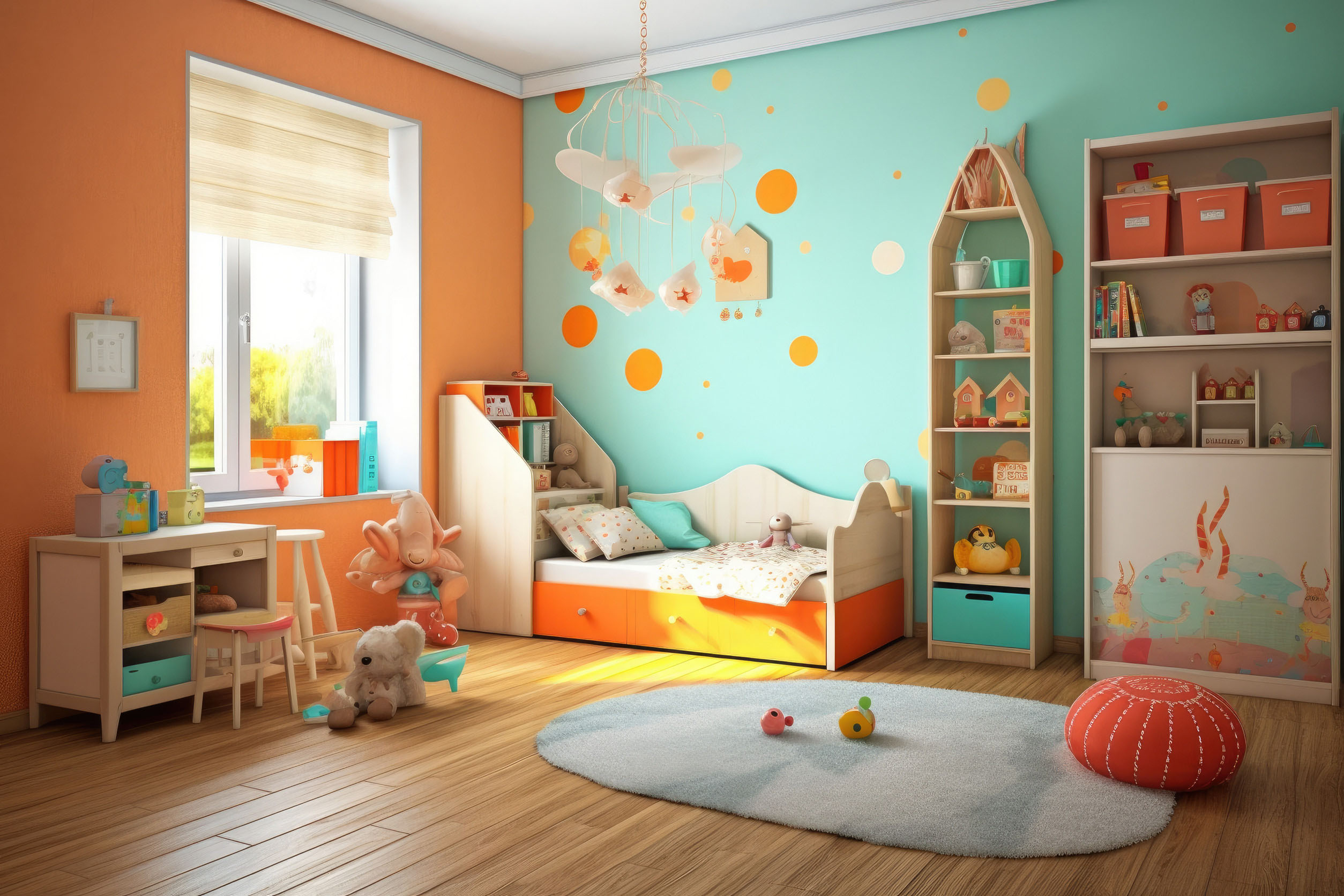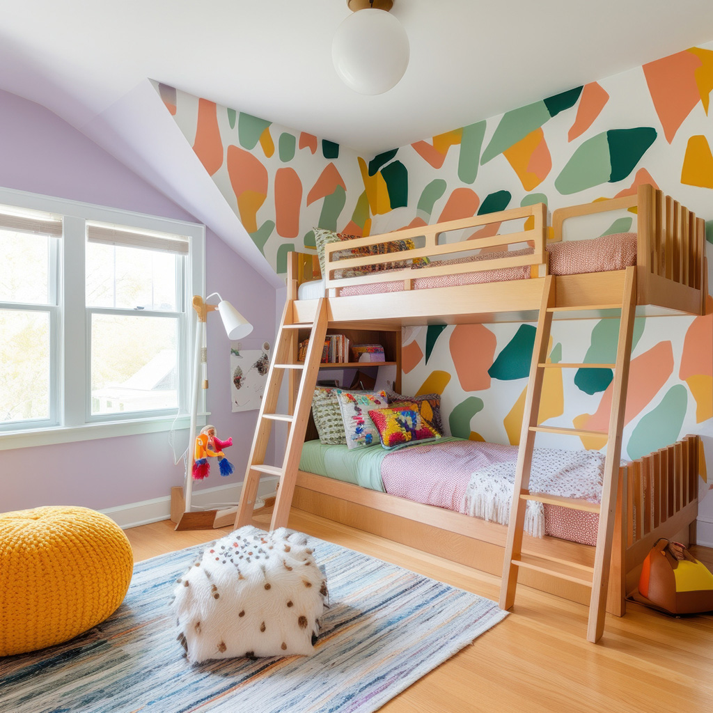 - pokój dziecięcy: tapeta z bajkowymi motywami lub delikatnym wzorem na jednej ścianie i zmywalna farba na pozostałych to duet idealny. Warto wybrać farbę tablicową lub magnetyczną, która pozwoli dziecku rozwijać kreatywność bez szkody dla ścian.