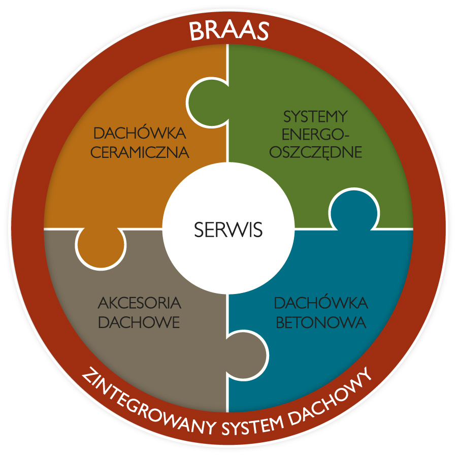 Bogata oferta akcesoriów, dachówek płaskich i profilowanych oraz dachówek kształtowych Braas zapewnia inwestorom pewne rozwiązania na lata. Całościowe podejście do kwestii budowy dachu, najwyższa jakość produktów i wykonawstwo zgodne ze sztuką dekarską są gwarancją trwałości i niezawodności.
